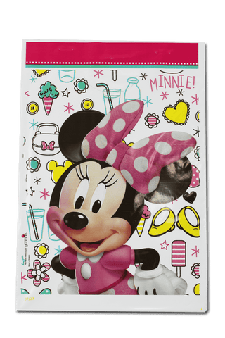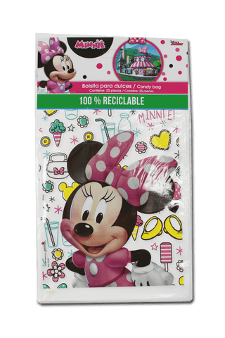 Bolsas temáticas de Minnie Mouse, ideales para fiestas infantiles. Perfectas para llenarlas con dulces, pequeños obsequios y preparar un bolo divertido.