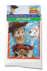 Bolsas temáticas de Toy Story 4, perfectas para llenar con dulces, pequeños regalos y preparar un bolo divertido.