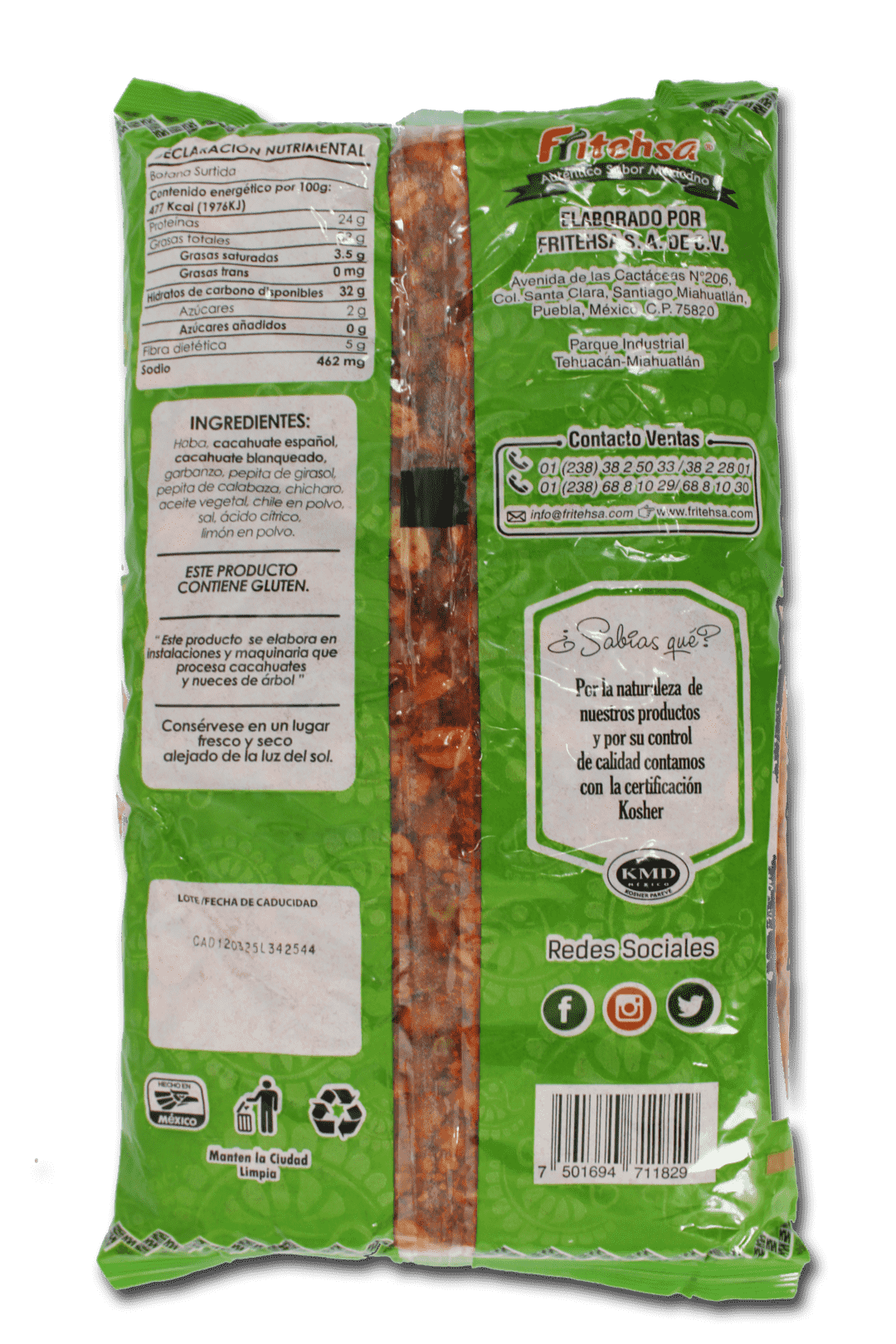 Surtido de botanas variadas en una presentación de 800 gramos. Una combinación perfecta para disfrutar en cualquier momento.