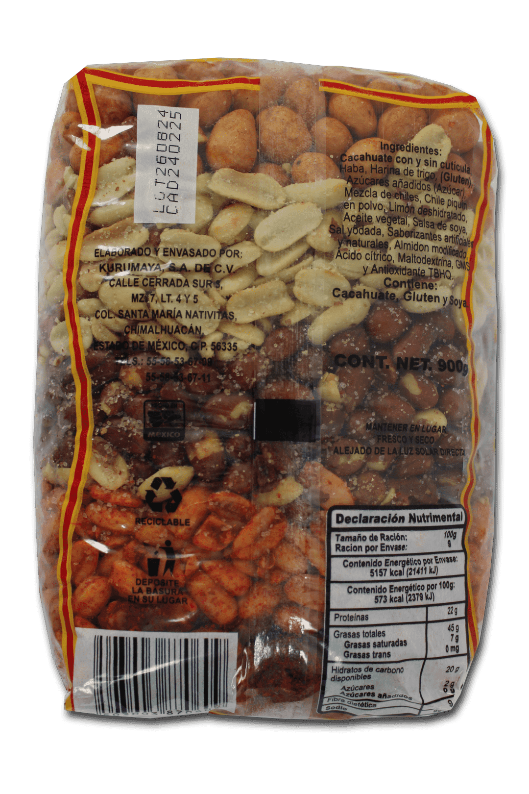 Tradicional cacahuate japonés con una capa exterior crujiente, en una práctica presentación de 900 gramos. Perfecto para compartir o disfrutar en reuniones