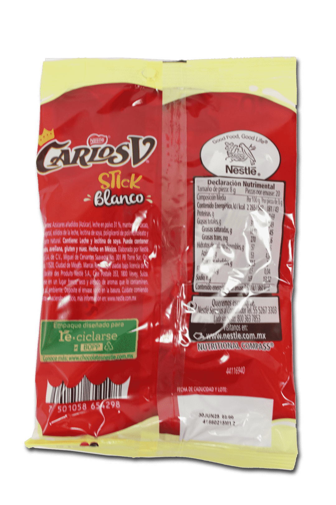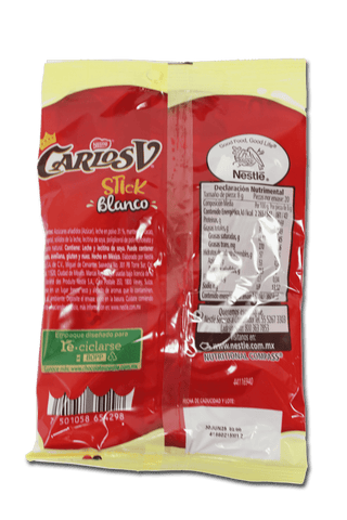 El clásico sabor de Carlos V ahora en su versión blanca. Un delicioso chocolate suave y cremoso, ideal para quienes disfrutan de un toque de dulzura refinada.