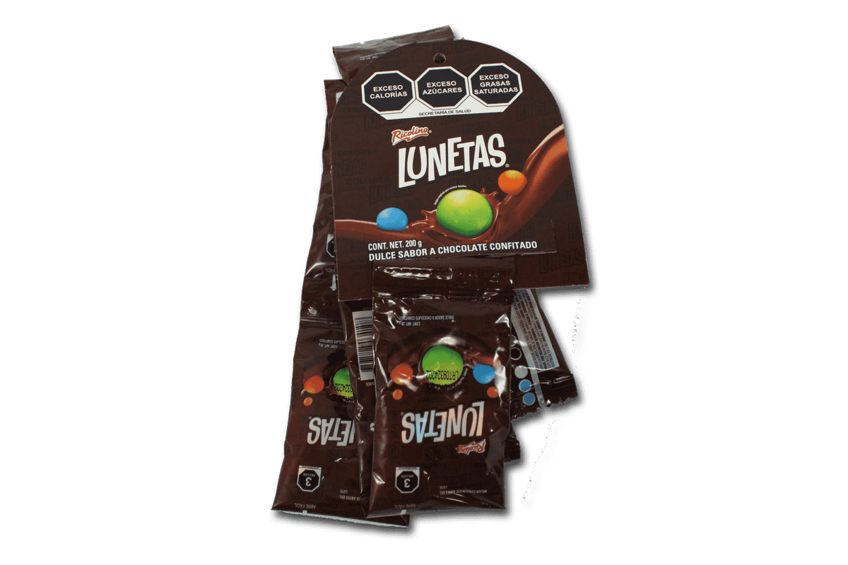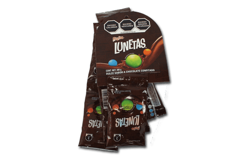 Coloridas lunetas de chocolate con una capa crujiente que envuelve el chocolate suave y dulce. Perfectas para compartir o disfrutar como snack en cualquier momento.