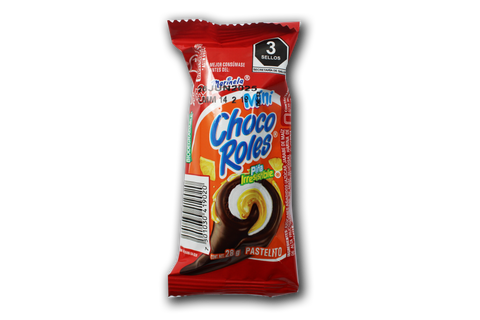 Pequeños pastelitos de piña enrollados, con cobertura de chocolate y chispas. La versión mini del clásico Choco Rol.