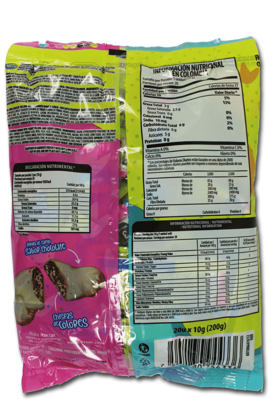 Chocolate con leche en forma de sapito, decorado con chispas de colores, divertido y delicioso para disfrutar en cualquier ocasión.