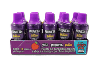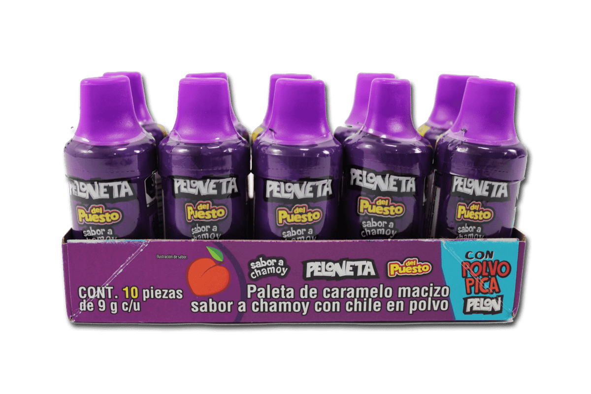 Deliciosa paleta de caramelo macizo sabor chamoy, rellena de polvo con chile y cubierta de dulce enchilado.