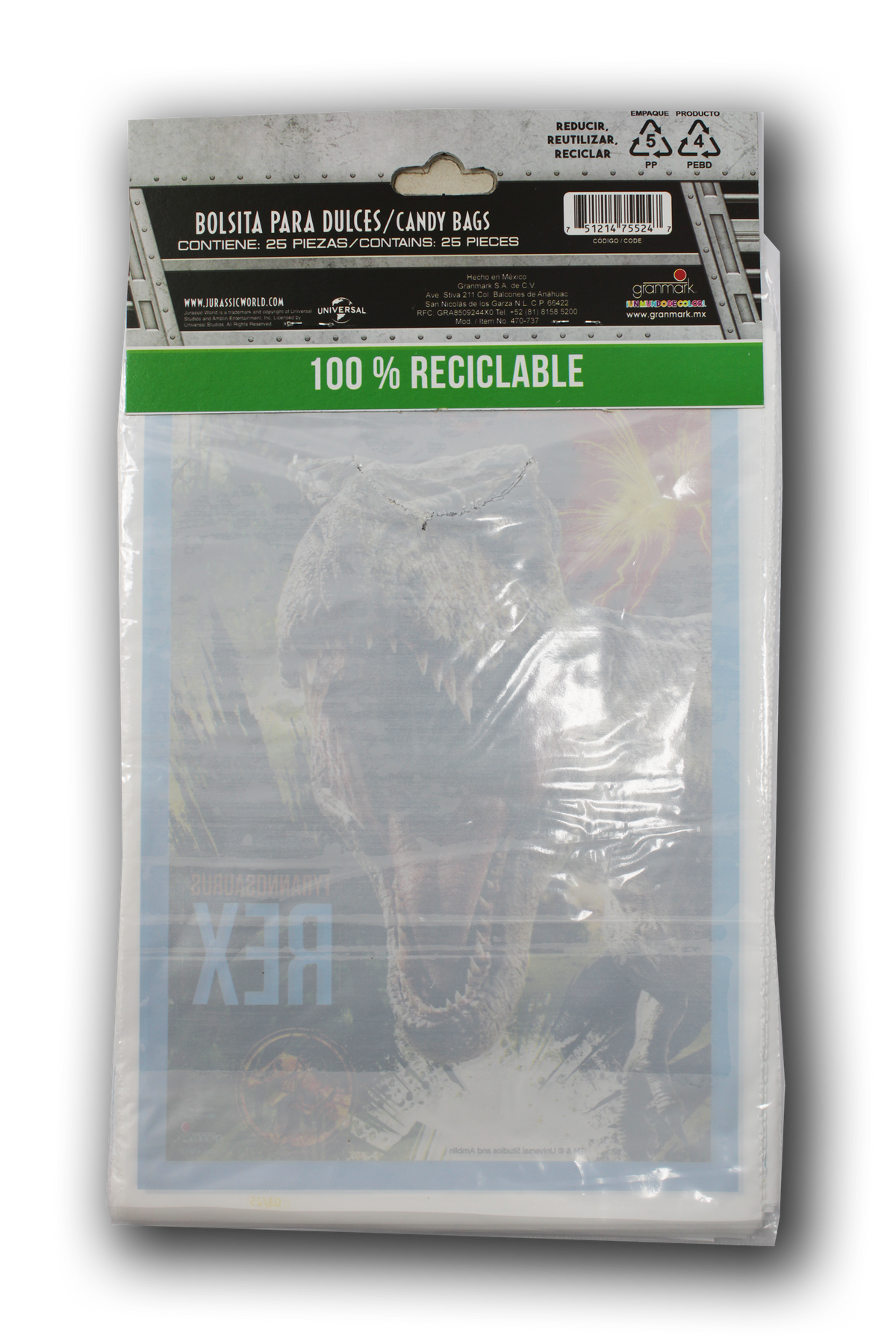 Bolsa para dulces Jurassic World, ideal para guardar los souvenirs de tu fiesta temática de dinosaurios.