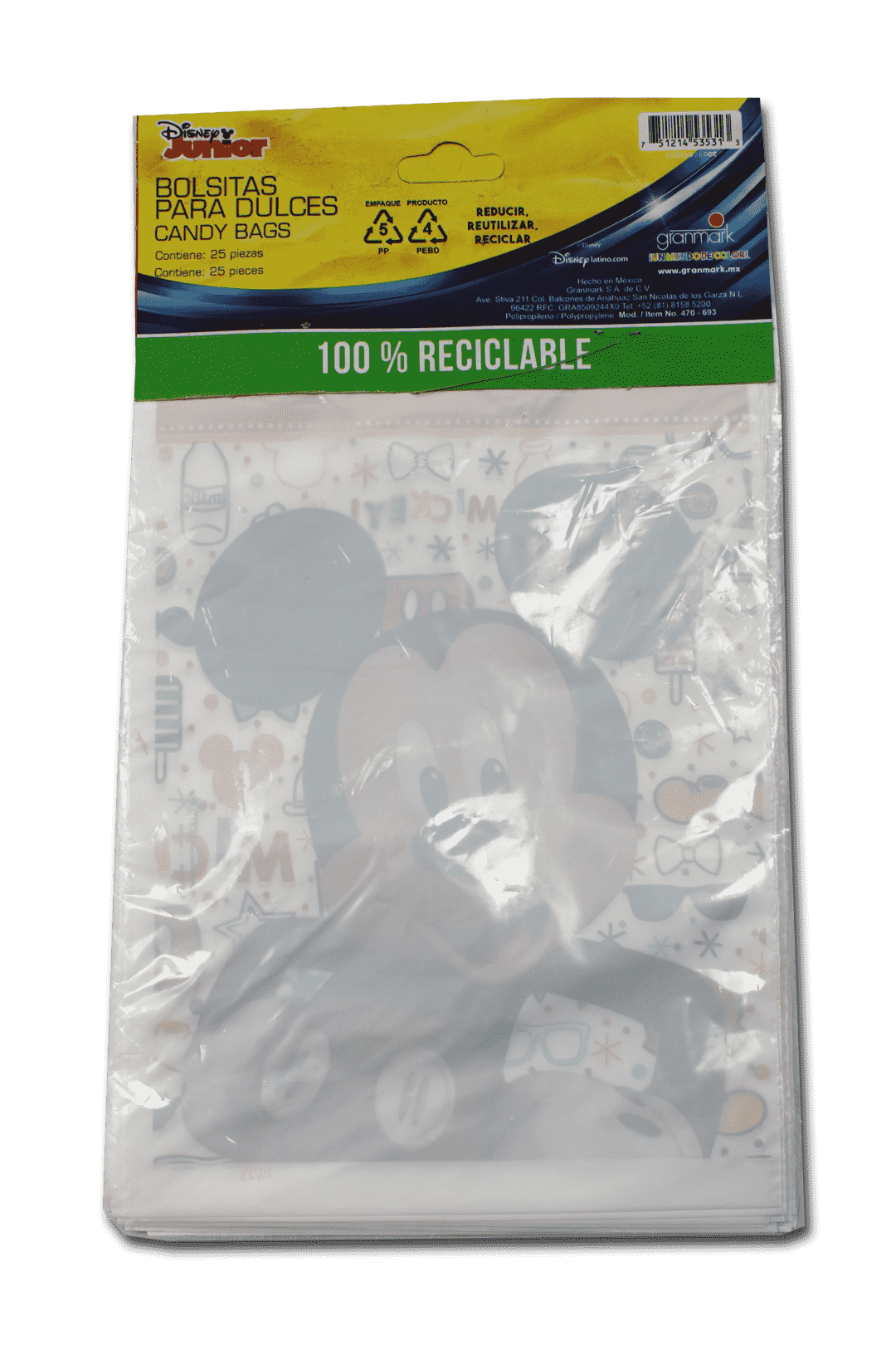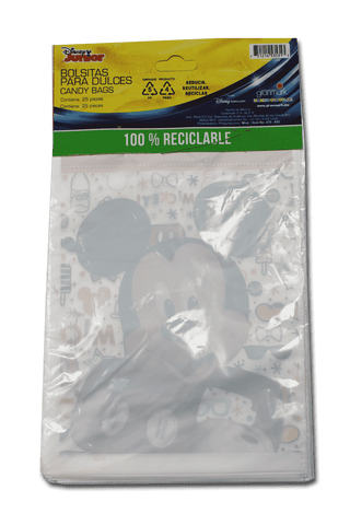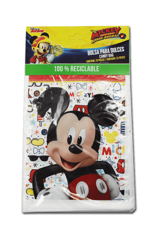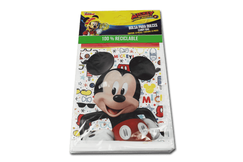 Bolsas temáticas de Mickey Mouse, ideales para fiestas infantiles. Perfectas para llenarlas con dulces, pequeños regalos y preparar un bolo.