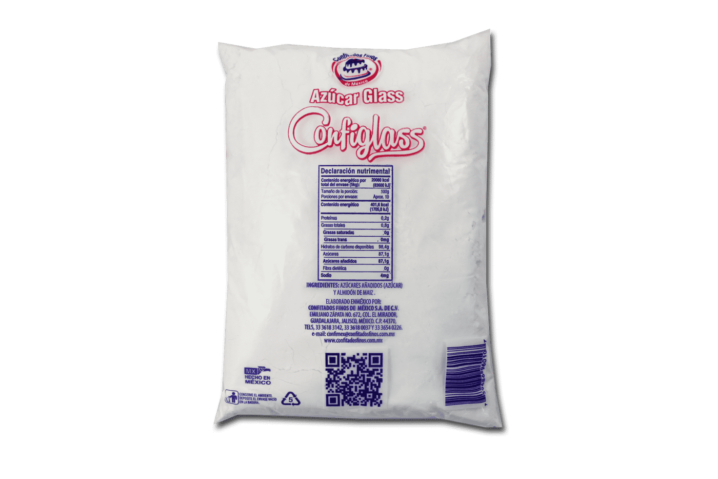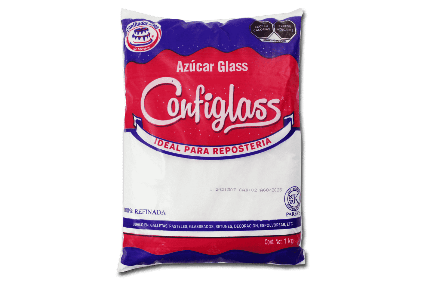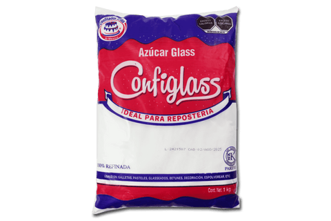 Azúcar glass de alta calidad, perfecta para coberturas suaves. Presentación de 1 kg.