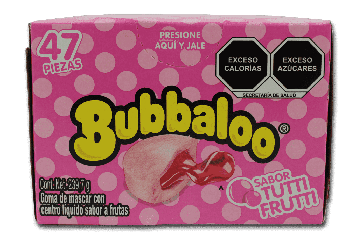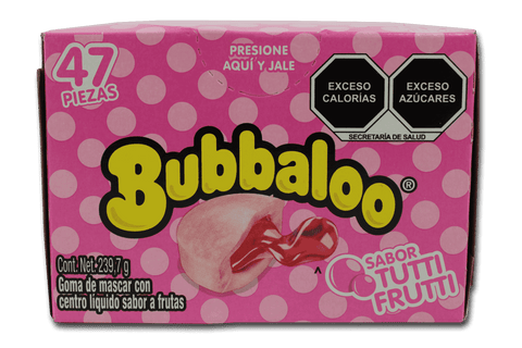 Chicle relleno con sabor tutti fruti, ideal para disfrutar de un dulce y suave sabor frutal.