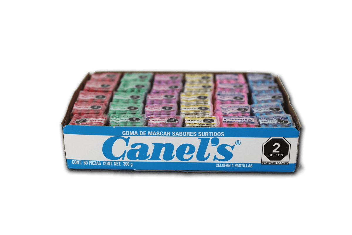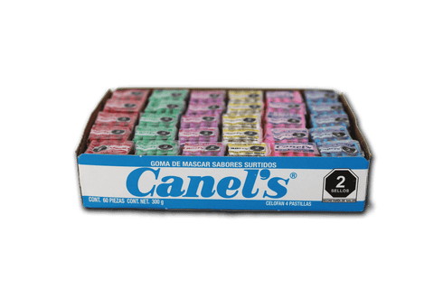 Chicles en presentación de cuatro sabores variados para disfrutar y compartir.