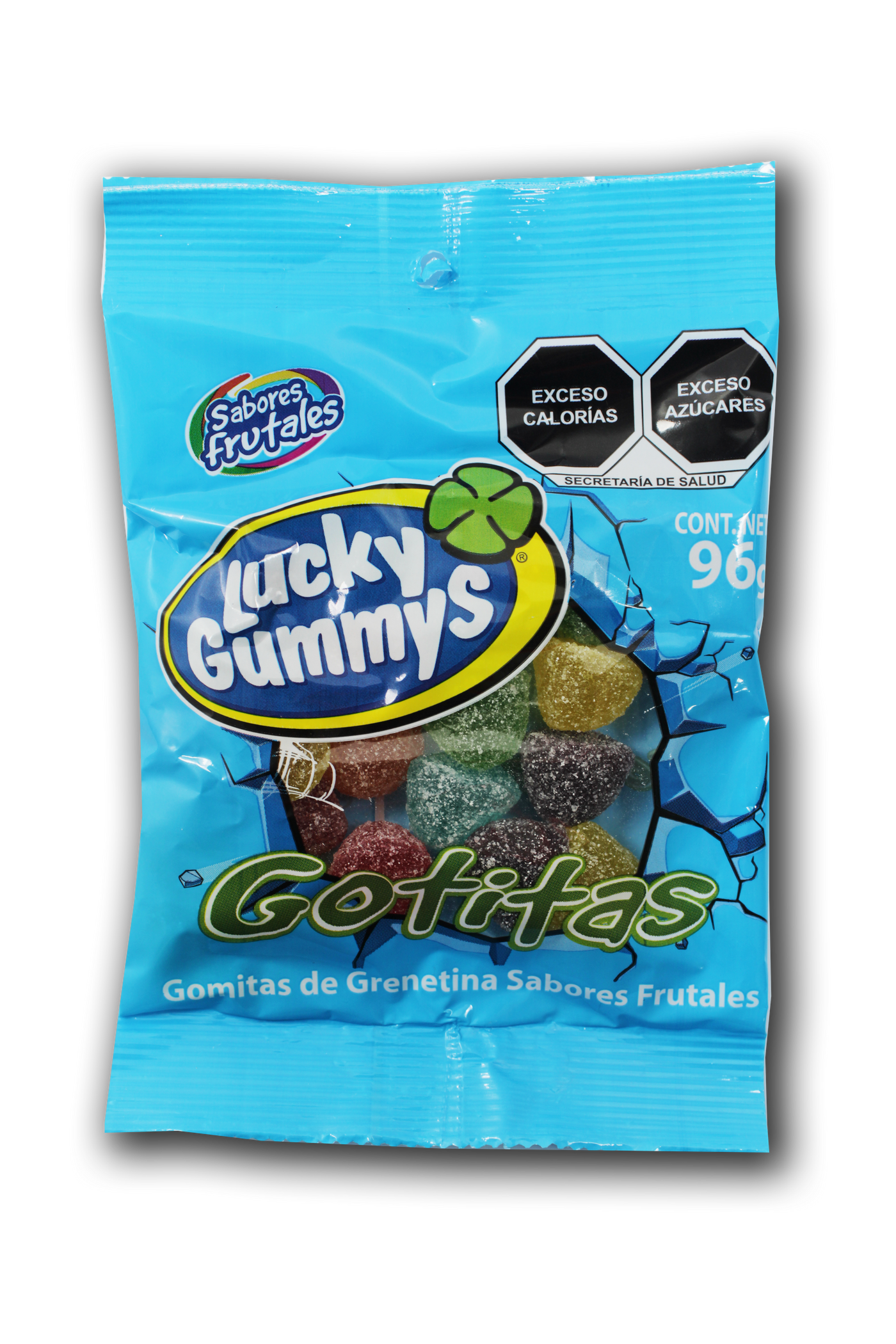 Gomitas de grenetina en forma de gotitas con una variedad de sabores frutales.