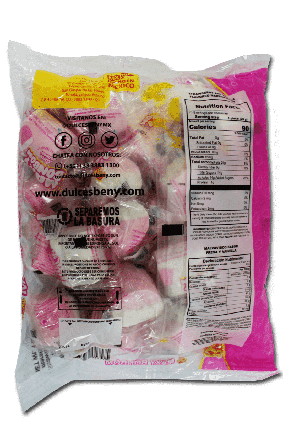 Un delicioso y suave malvavisco empaquetado en su bolsita individual. Ideal para disfrutar en cualquier momento, ¡un placer irresistible!