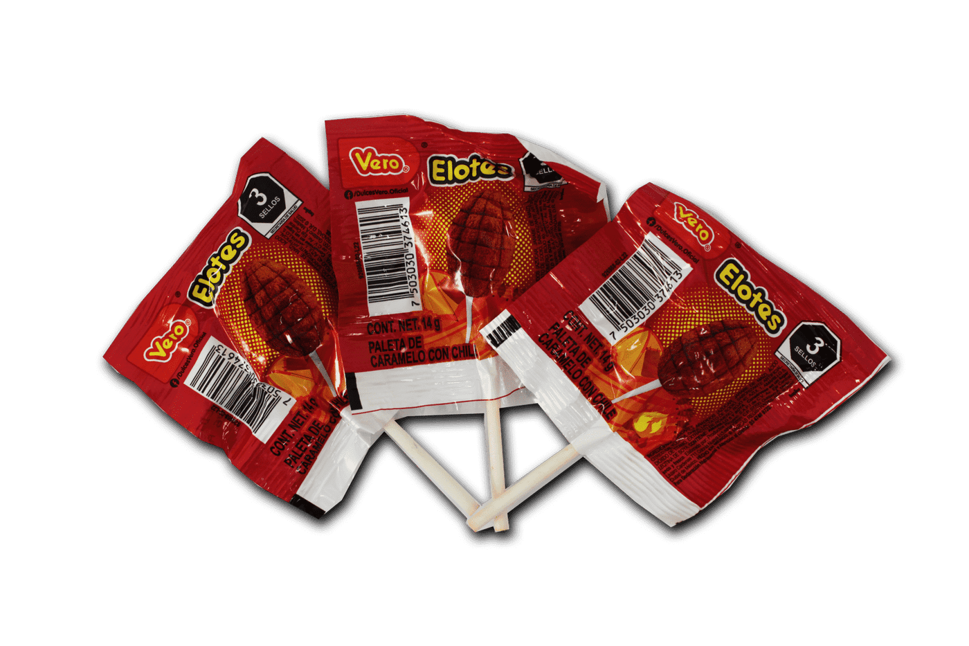 Paleta con forma de elote y sabor a chile, combinando dulzura y un toque picante.