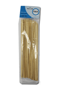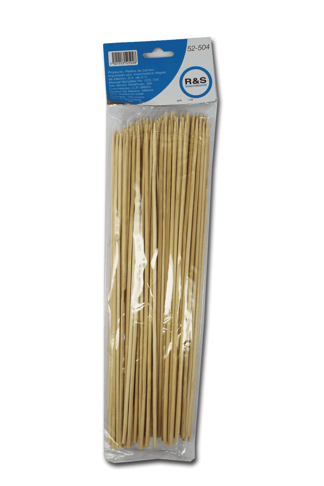 Palillos de bambú de 25 cm x 3 mm, resistentes y ecológicos. Ideales para preparar brochetas en cualquier tipo de evento. El paquete contiene 100 piezas.