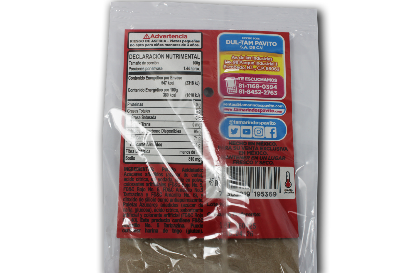 Paleta de dulce en polvo comprimido con un intenso sabor a chamoy.