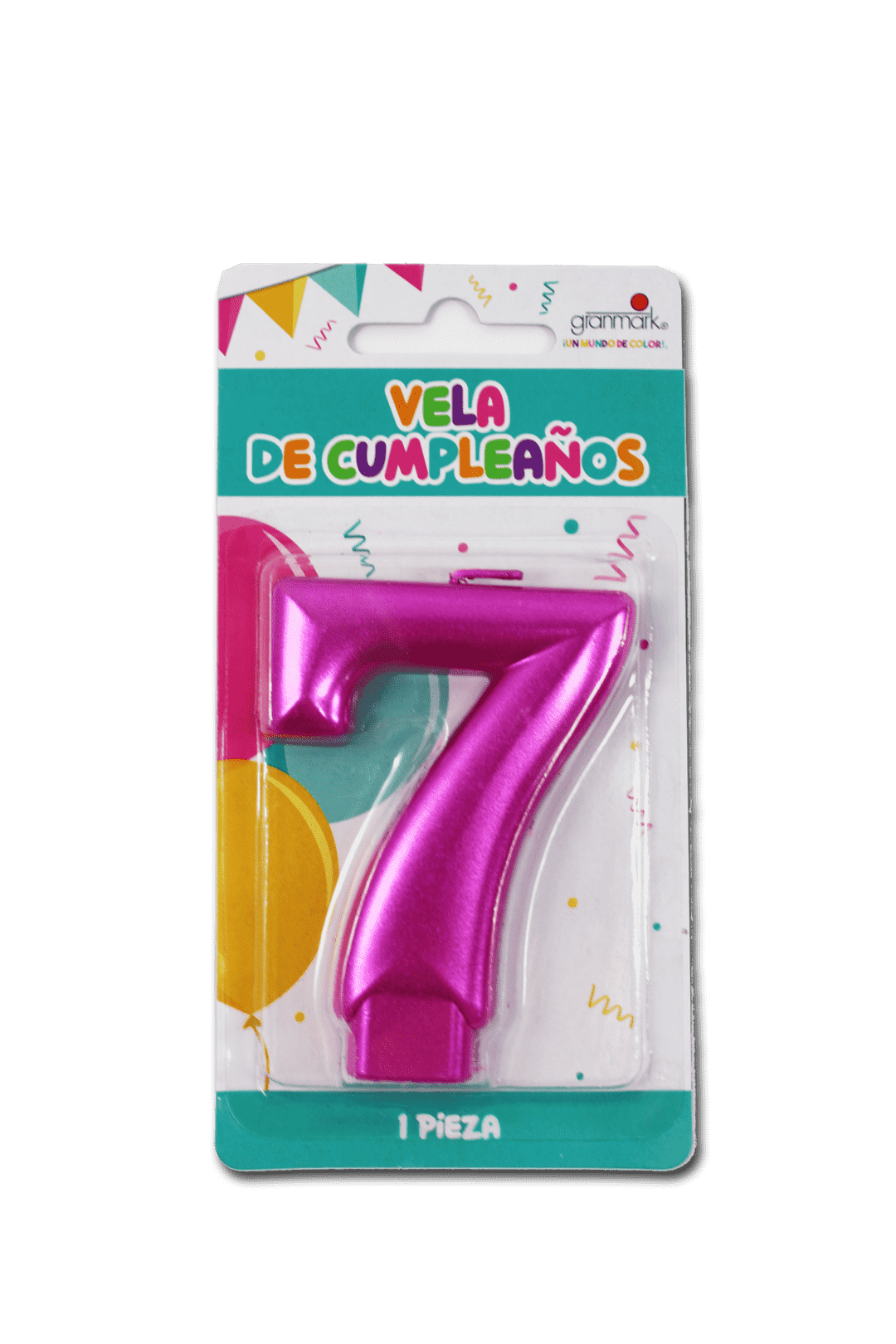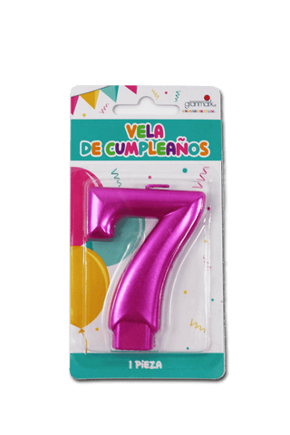 Vela para pastel número 7 en color rosa metálico, ideal para fiestas modernas y coloridas.